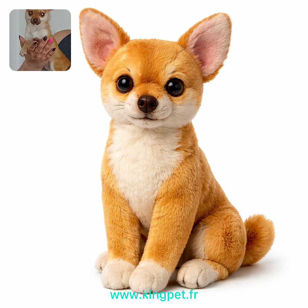 • A fluffy, alert dog with large ears and soulful eyes gazes directly into the camera, standing out against a neutral stone background. Its soft fur and expressive face make it an endearing portrait shot.